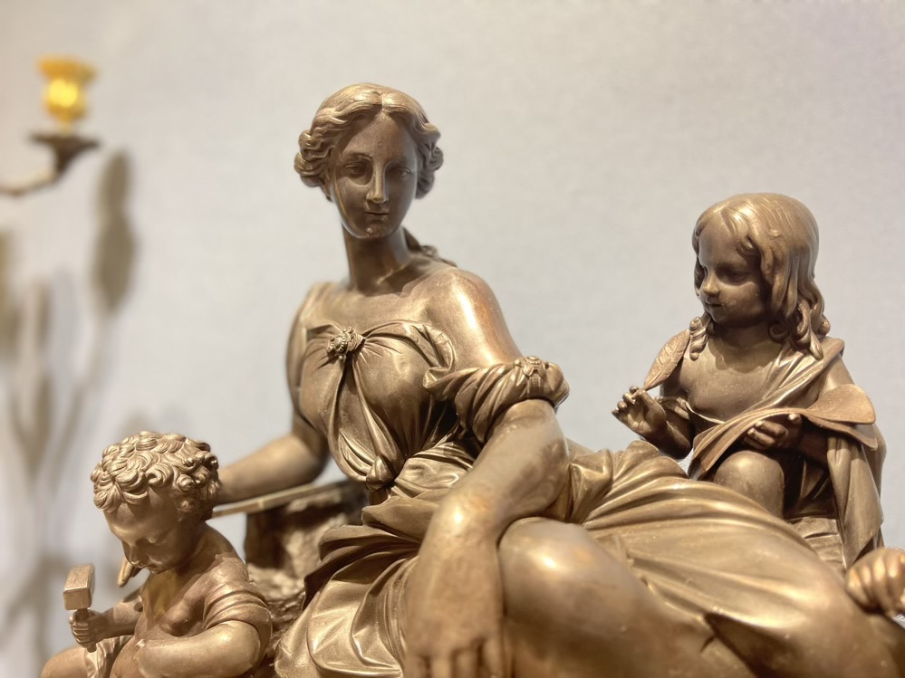 Chiếc đồng hồ trong ảnh, Devaulx đã mô tả Một người phụ nữ xinh đẹp cùng với ba thiên thần đang lần lượt trong các hoạt động điêu khắc, hội họa và viết. Sự khoan thai cùng với điệu bộ, sự thanh thản trong động tác được phối hợp một cách hài hòa trong hình thể đã tạo nên một tuyệt tác nghệ thuật. Người phụ nữ với những đứa trẻ vây quanh cho thấy một không khí gia đình sum vầy, đầm ấm mà chắc hẳn ai cũng cảm nhận được tình mẫu tử qua ánh mắt của bà.