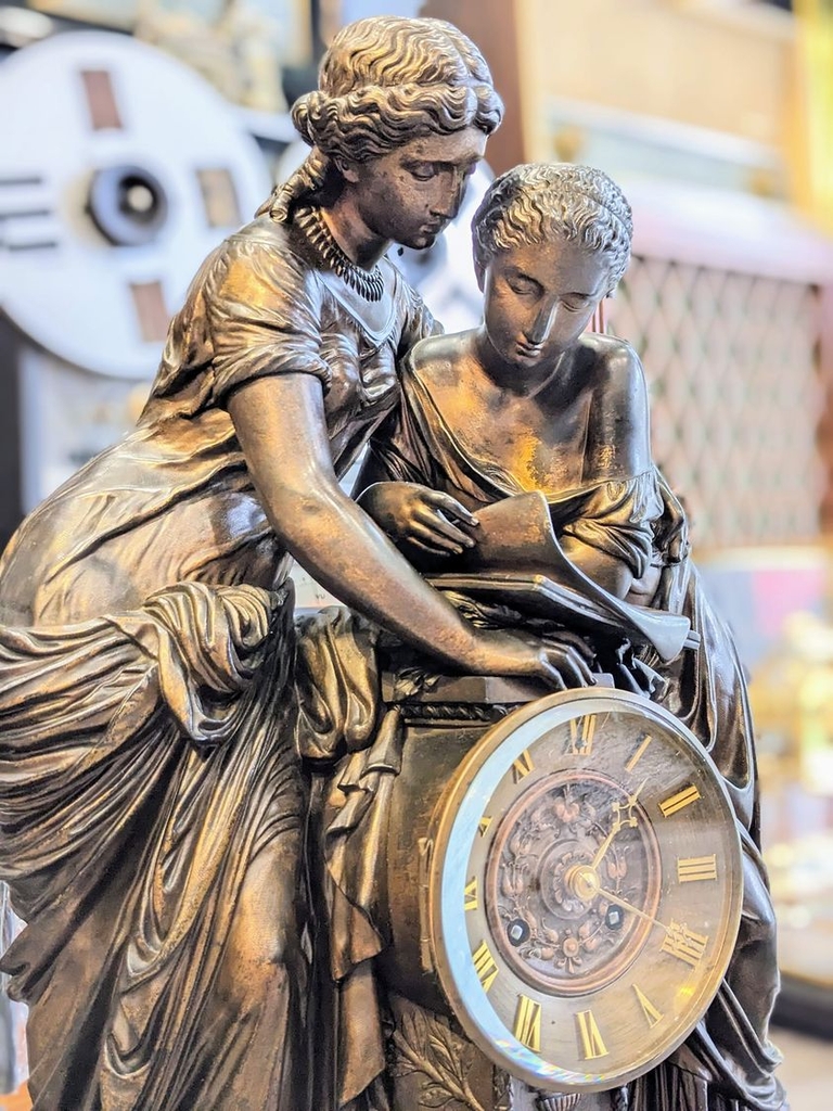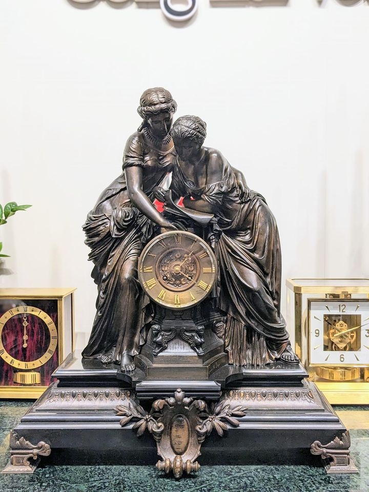 Đồng hồ chân nến 2 thiếu nữ đồng đen